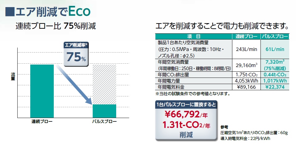 今お使いのエアー機器にガンもしくはバルブを取り換えるだけでエア削減率 75%※の