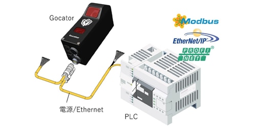 オールインワン設計のスマート3DセンサーGocatorは、3Dスキャンに加えて寸法測定や外観検査を行い、OK/NGの判定結果をPLCに出力するといった一連の流れをセンサー本体のみで完結できます。